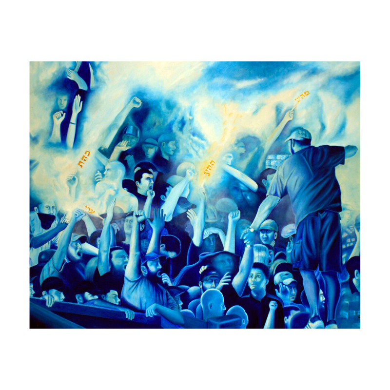 The painting depicts a celebration of a holiday near a cave of a righteous tomb. It is ok to act joyful and happy in a festive environment, but it is more important to achieve a state of true and internal happiness in all times, situations and environments.
