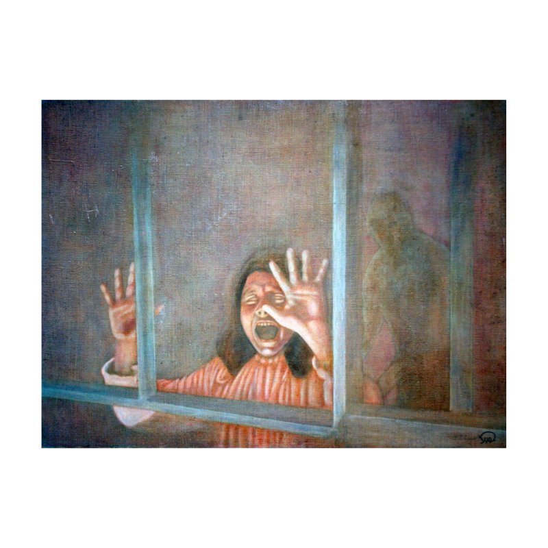 This painting is a memory of me leaving my family from Israel to the states, which was sad and tough for most of us, including my sister, as portrayed in the painting. It took me time to realize that leaving my family created pain for me and them, and it took us years to become close again, not physically, but relationship wise.