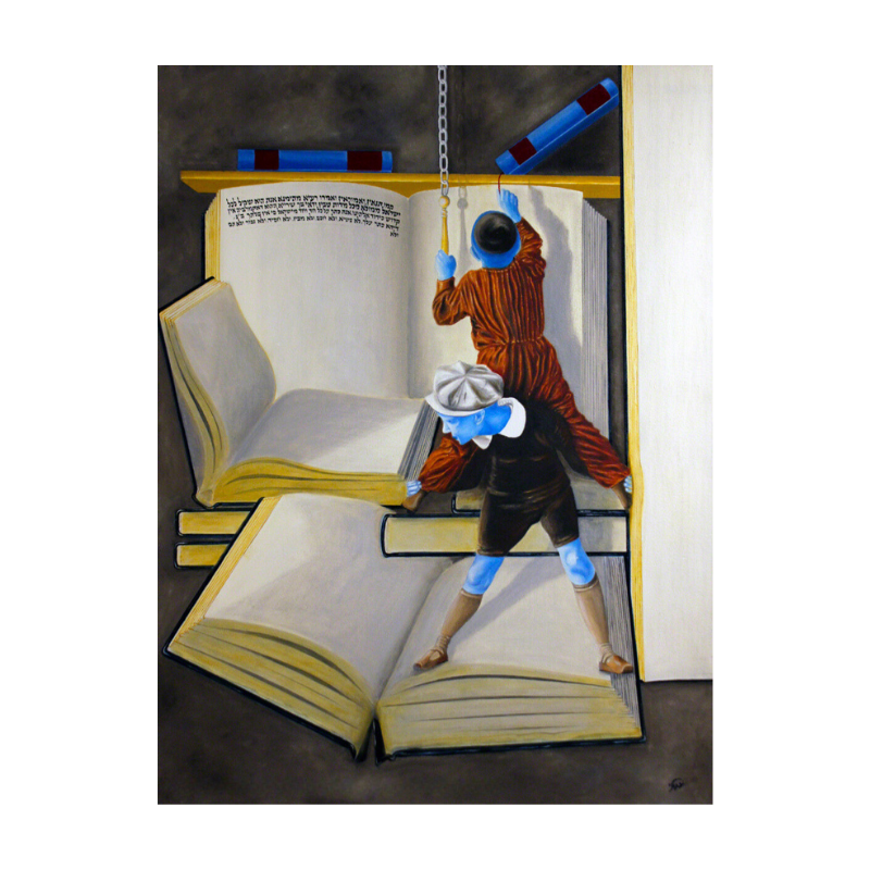 Children in this painting are shown helping each other reach the shelf. Kids are very often true unconditional friends and only with age develop a more selfish agenda and conditional friendship. One of the traits we need to adopt from kids is their pure and unconditional friendship.